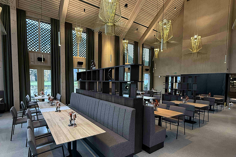 Das Restaurant steht nicht nur Mitgliedern offen: Ob Mitarbeiteranlass, Familienfeier oder ein gemütlicher Kaffeehalt beim Spaziergang - das neue Clubhaus mit Holzfassade bietet für jeden etwas. Wir wünschen genussvolle Momente und “e Guete”.