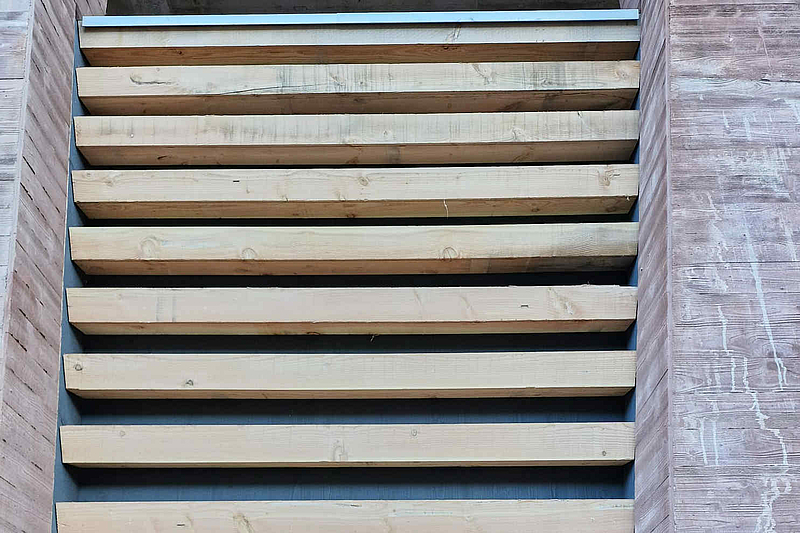 Insgesamt wurden 37 Wandelemente versetzt und montiert. Für die Konstruktion kamen rund 50m3 Schweizer Douglasienholz zum Einsatz.