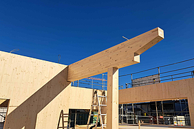 Die Mitarbeitenden der wenger holzbau ag sind derzeit mit vollem Einsatz dabei, den Ersatzneubau der Prüfhalle, der Kundenzone und des Bürobereichs für den TCS Thun-Allmendingen aufzurichten.