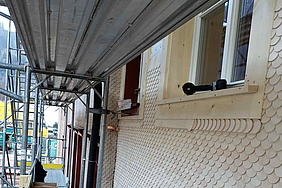 Die engagierten Mitarbeitenden der wenger holzbau ag widmen sich mit grosser Sorgfalt der Wiederherstellung des denkmalgeschützten Schulhauses Kamp in Lungern.