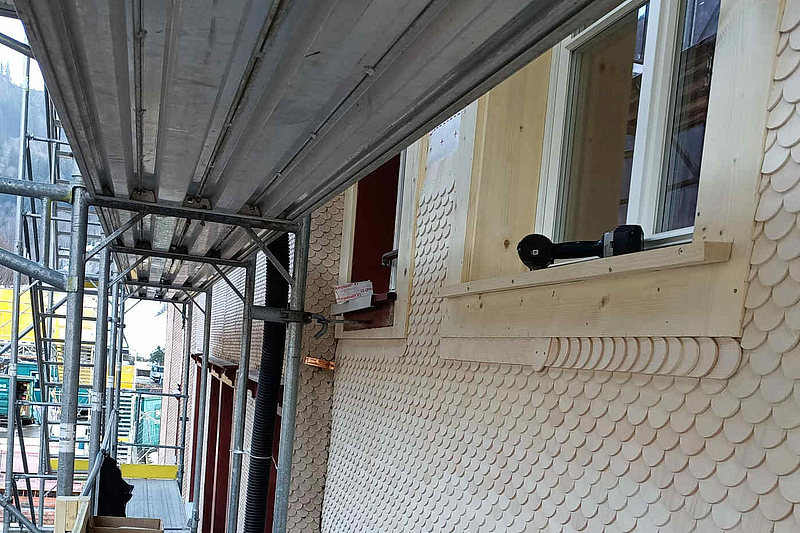 Mit viel Freude und handwerklichem Können werden die alten Schindeln durch neue ersetzt und so die historische Bausubstanz behutsam erneuert.
