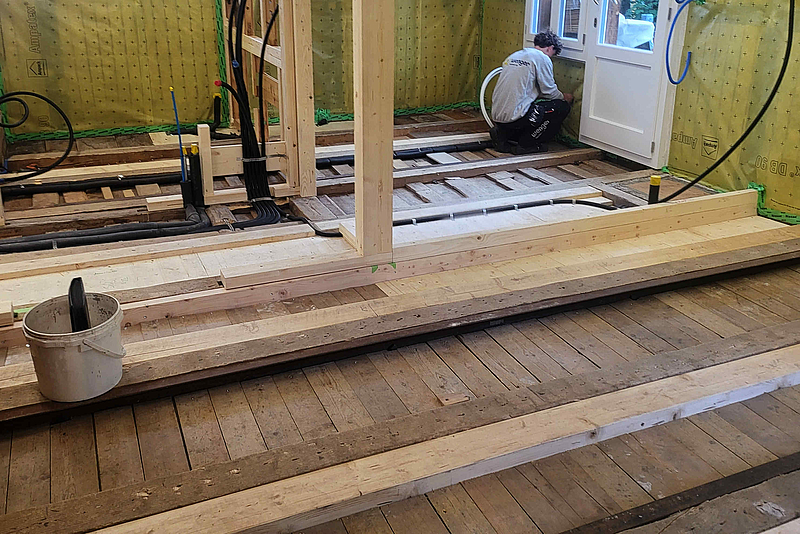 Mitarbeitende führten umfangreiche Umbauarbeiten am Chalet Schwyzerhüsli in Wengen aus.