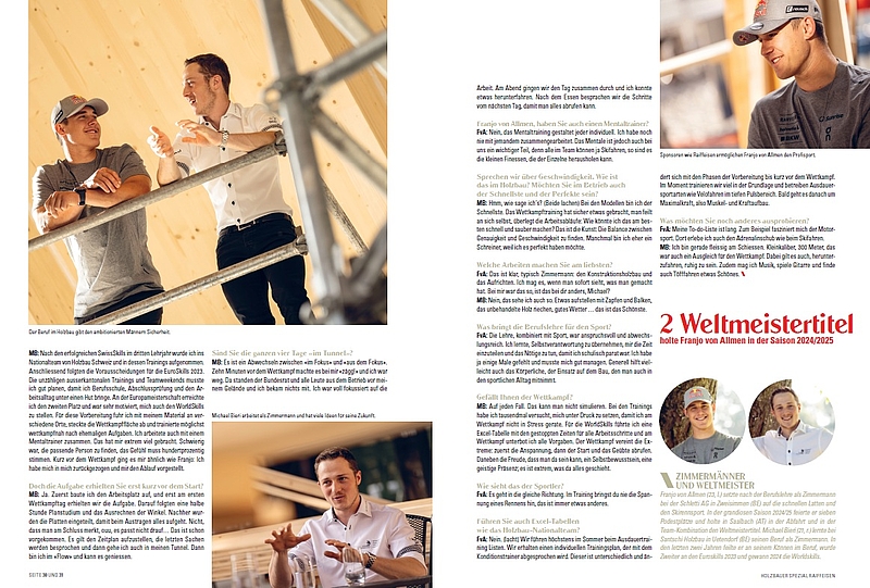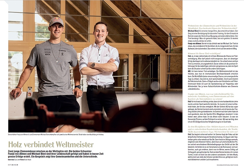 Im Rahmen eines Beitrags für das Magazin “WirHOLZBAUER Spezial” hat die wenger holzbau ag weltmeisterlichen Besuch erhalten.