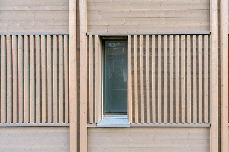 Die Architektur orientiert sich an den typischen Dorfbauten der Region und interpretiert diese zeitgemäss neu. Harmonische Fassaden aus Holz sowie lamellenartige Strukturen prägen das Erscheinungsbild und verleihen der Überbauung eine natürliche und hochwertige Ausstrahlung.